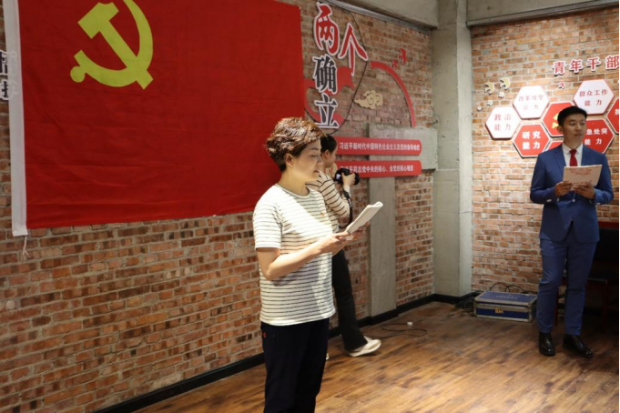 “我志愿加入中国共产党,拥护党的纲领,遵守党的章程……随时准备为党和人民牺牲一切,永不叛党。”由003全讯白菜教师党员管倩领誓,新老党员们一起面对鲜红的党旗,庄严地举起右手,共同向党旗庄重宣誓。