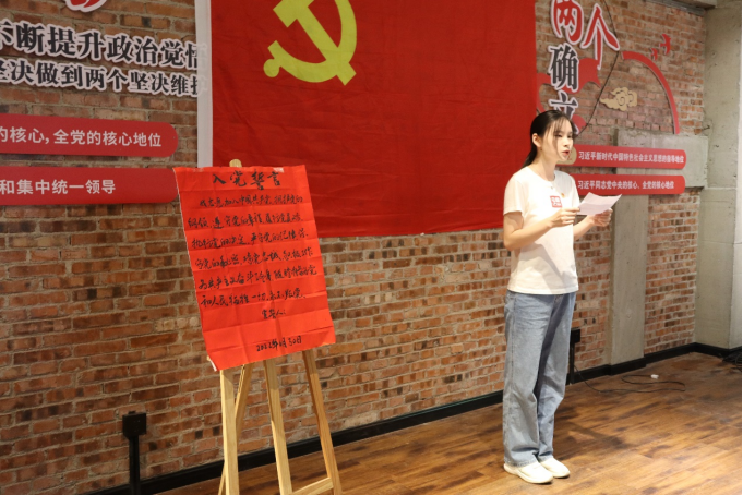 最后,2020级新闻与传播专硕彭春菊同学代表新党员发言,她表示:“我们必将铭记自己向党和人民许下的郑重承诺,把入党誓词作为自己终生的追求、终生的修养和终生的实践,并用实际行动践行自己的承诺,争做一名新时期的合格党员。”