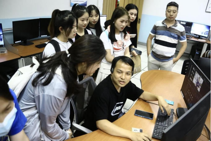 王威主播给同学们讲解导播台的运作流程