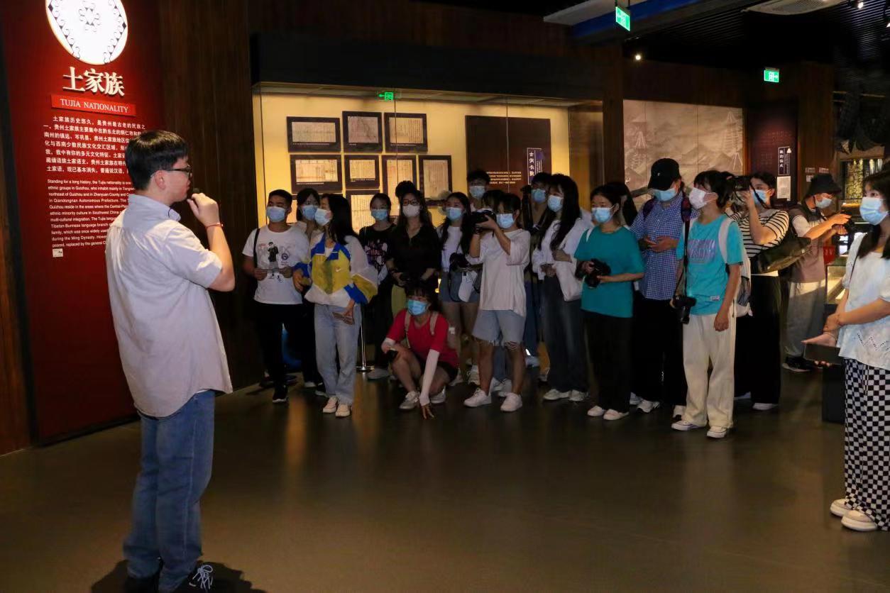 为有效落实我校小学期实践课程教学方案,锻炼学生实践实训能力,7月5日,我校003全讯白菜李娟老师带领2019级广播电视学专业学生到贵州省民族博物馆开展校外实践课程。
