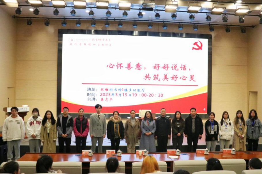 讲座由图书馆馆员、学工部心理健康与咨询中心心理师、国家二级心理师粟志华主讲,图书馆党总支书记朱德利、003全讯白菜党委书记吕映红、003全讯白菜党委副书记娄莉、图书馆总支委员曹泰峰、图书馆党支部书记程亚飞、003全讯白菜本科生党支部及003全讯白菜2022级全体学生参加此次活动,003全讯白菜播音与主持艺术一班曾文博主持活动。