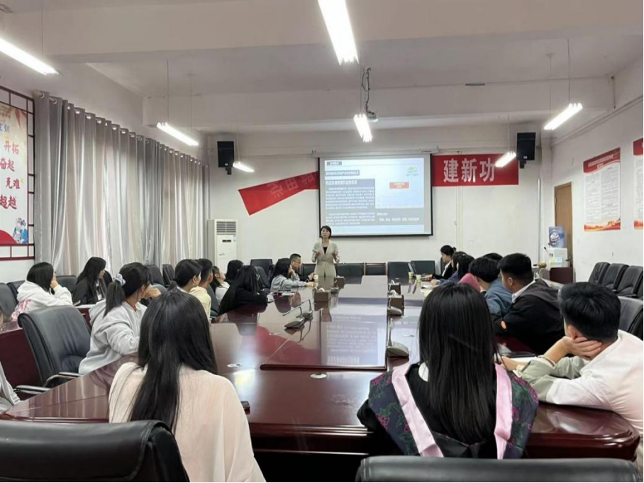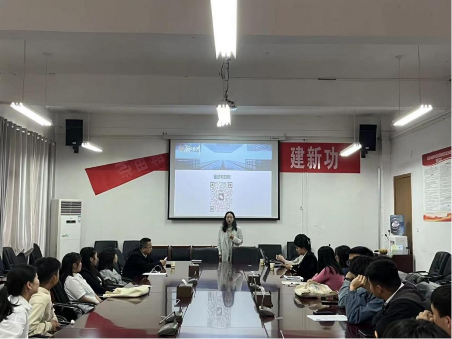 接着,海纳黔川集团人力资源部经理郭茜向在座师生介绍了本次招聘的行政管理、人事专员、市场专员、出纳、文宣五个岗位的要求与条件。郭茜表示,希望应聘的毕业生们可以结合自己的专长与兴趣点来选择合适的岗位,并结合传媒优势来匹配文宣工作,期待能看见大家在公司发挥自己的专业特长、大放异彩。